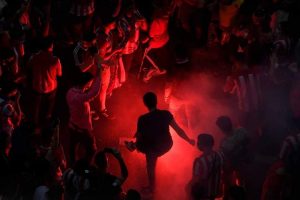 اجتاح أنصار أتلتيكو مدريد شوارع العاصمة الاسبانية في احتفالات جنونية عقب تتويج “الروخي بلانكةس” بلقب الدوري الإسباني الغائب عن الفريق لمدة 7 سنوات.
