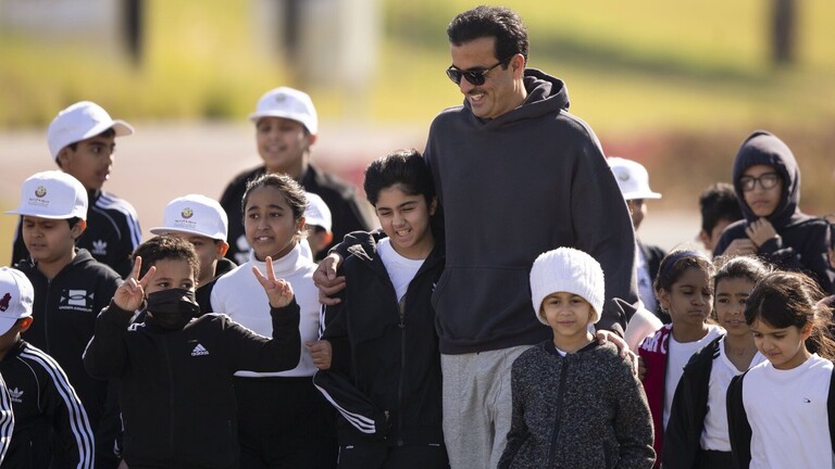 ومارس تميم رياضة المشي في ممشى حديقة ملعب “البيت” المونديالي، بمشاركة عدد من طلاب مدارس المرحلة الابتدائية، وذلك “في إطار توعية النشء بأهمية الرياضة وتشجيعهم على اتباع أساليب الحياة الصحية والاهتمام باللياقة البدنية”.