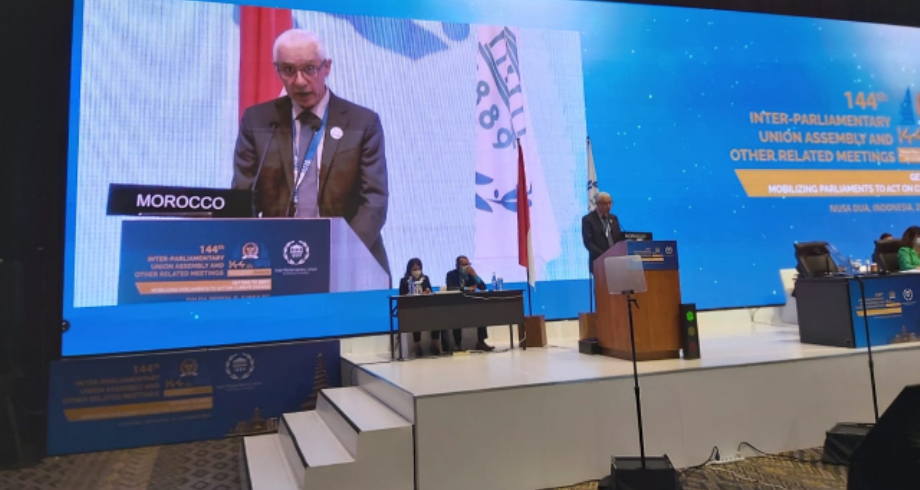 وجدد الطالبي العلمي في كلمة باسم البرلمان المغربي ألقاها في افتتاح أشغال الجمعية الـ144 للاتحاد البرلماني الدولي المنعقدة حاليا بأندونيسيا، التأكيد على التزام المملكة، بقيادة الملك محمد السادس ، بتنفيذ التزاماتها في إِطار مؤتمر الأطراف في اتفاقية الأمم المتحدة للتغيرات المناخية “مما جعلَها محط ثقةِ المجتمع الدولي بانتخابها في مطلع مارس الجاري في نيروبي رئيسا للدورة السادسة لجمعية الأمم المتحدة للبيئة (ANUE-6 ) لولاية مدتُها سنتان، بعد أن احتضنت مراكش في نونبر 2016 الدورة 22 لقمة مؤتمر الأطراف في اتفاقية الأمم المتحدة، التي توجت بتدابير عملية لفائدة كوكب الارض”.