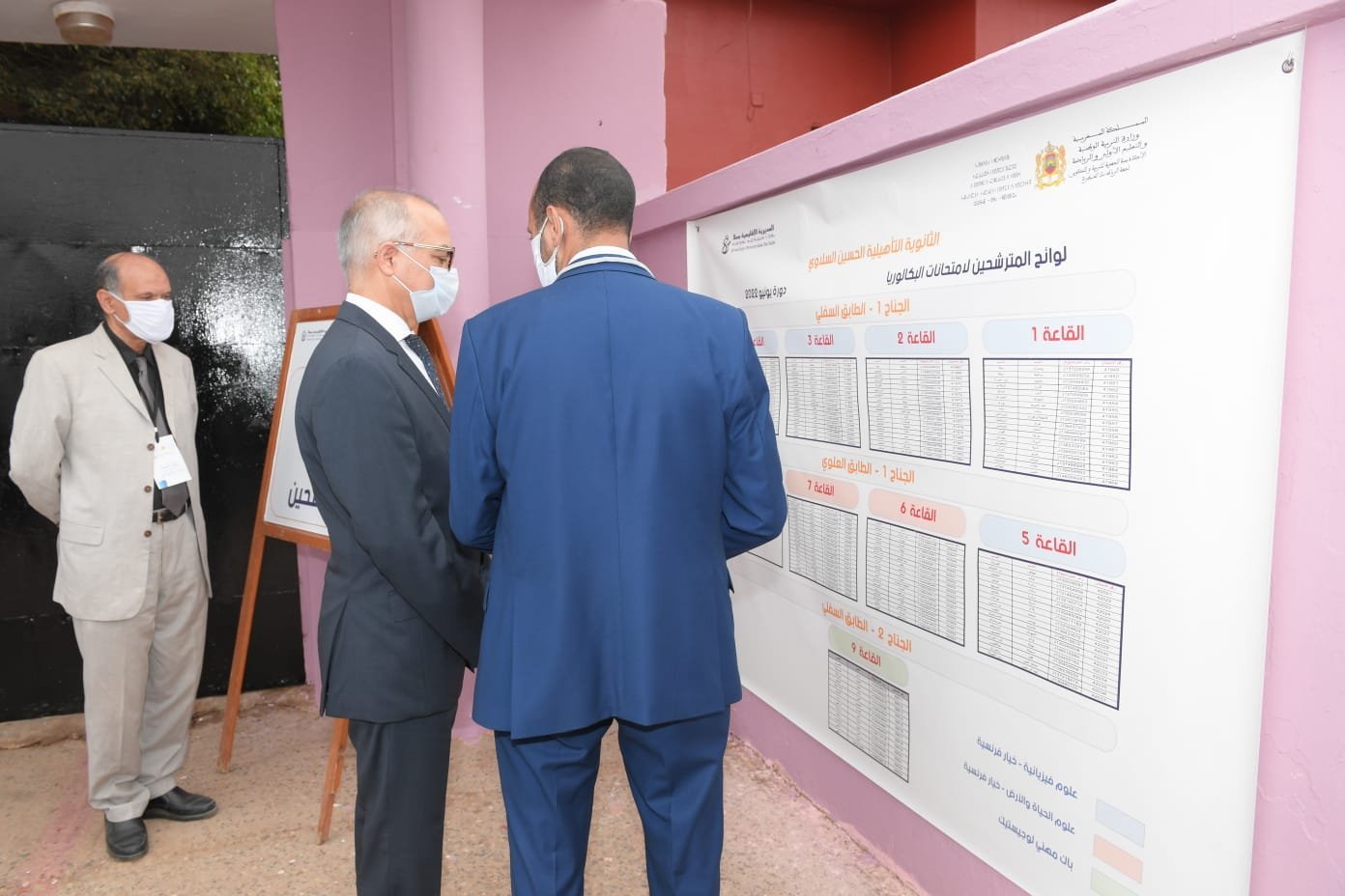واطلع بنموسى بالمناسبة، على مختلف العمليات التنظيمية داخل هذه المؤسسة التعليمية، من بينها الإجراءات الصحية المتخذة، وتوزيع التلاميذ داخل القاعات، فضلا عن العمليات التي ستواكب تسلم أوراق الامتحانات وتجميعها من أجل إرسالها الى مراكز التصحيح المعتمدة من طرف الأكاديمية.