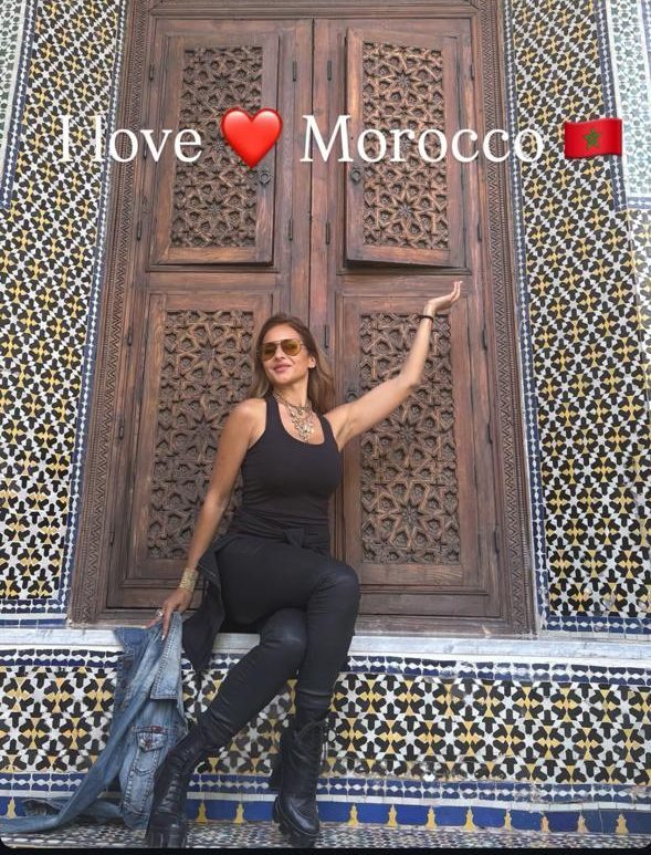 ونشرت نيللي مجموعة من الصور إلى جانب أبواب خشبية والزليج المغربي، الذي يبرز حرفية وإبداع الحرفيين المغاربة وغنى وجمال التراث المغربي.