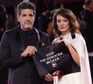اختار المخرج المغربي نبيل عيوش وزوجته الممثلة والمخرجة مريم التوزاني، في مبادرة إنسانية لافتة، التضامن مع غزة الواقعة تحت الإبادة والتجويع الإسرائيليين، بطريقة خاصة. وقام المخرجان المغربيان وهما يحملان حقيبة يد مستوحاة من الكوفية الفلسطينية، مزينة بعبارة “أوقفوا الإبادة الجماعية في غزة”، أمام عدسات الكاميرات الدولية على هامش الدورة الـ82 من مهرجان فينيسيا السينمائي […]