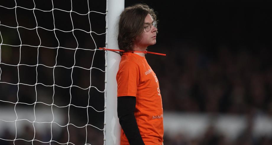 أقدم مشجع على ربط عنقه بقائم المرمى خلال المباراة التي فاز فيها إيفرتون الساعي للهروب من الهبوط على ضيفه نيوكاسل 1-صفر على ملعب “غوديسون بارك” بهدف في الدقيقة 99، في مباراة مؤجلة من المرحلة العشرين من الدوري الانكليزي لكرة القدم الخميس.