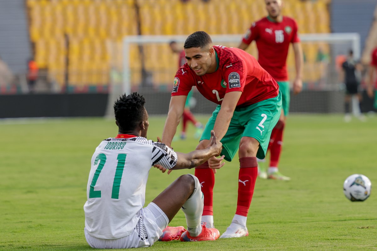 قام الاتحاد الافريقي لكرة القدم “الكاف”، اليوم الثلاثاء، بنشر صورة للدولي المغربي أشرف حكيمي، تنم عن روح رياضية عالية، وهو يبادر بمساعدة لاعب منتخب غنان إدريسو.
